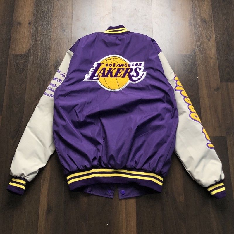Pakaian Pria > Jaket, Mantel, & Rompi > Jaket, Mantel, & Rompi Lainnya > VARSITY JAKET LAKERS UNGU WHITE BORDIR BACK AUTHENTIC FULLTAG & LABEL