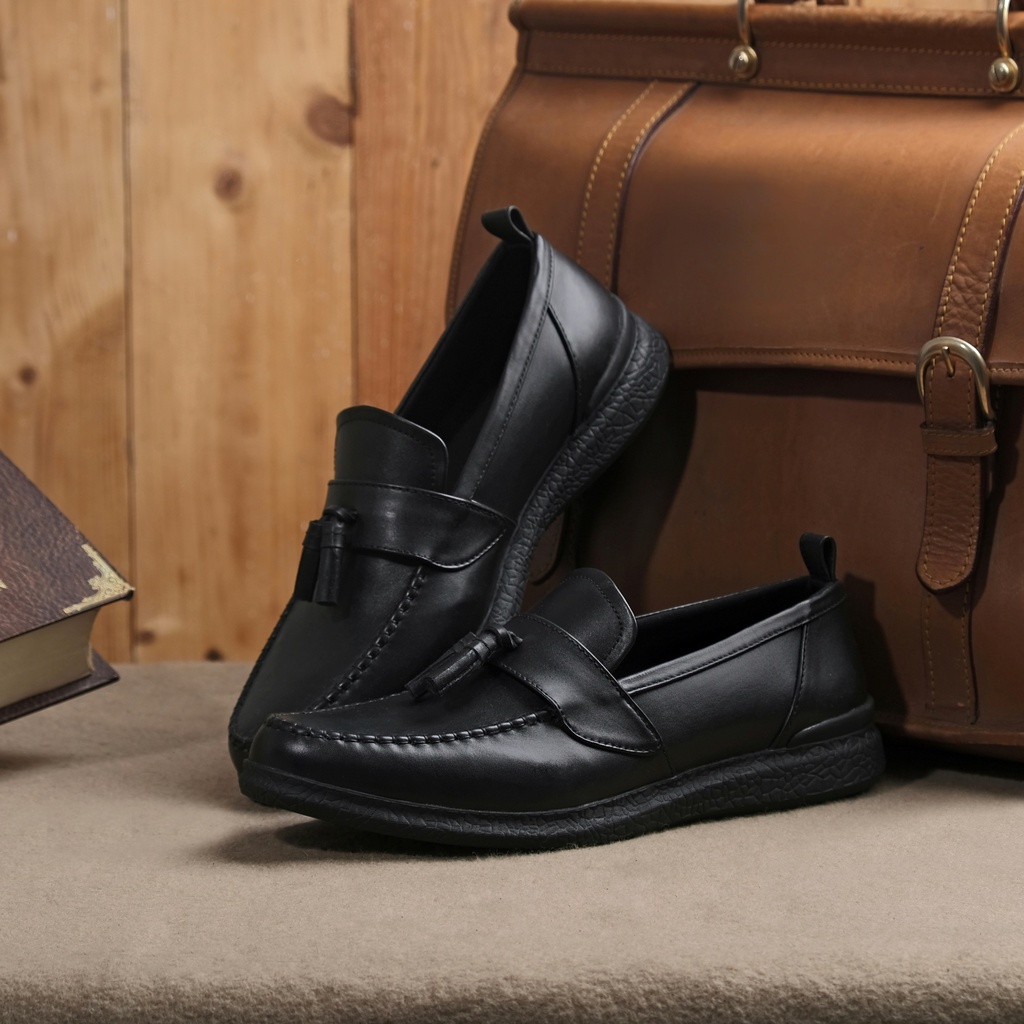 Loafers termasuk jenis sepatu populer dalam dunia fashion, karena sepatu loafers adalah salah satu sepatu yang wajib dimiliki oleh pria dewasa untuk acara formal. Loafers yang di usung kali ini yaitu jenis "tassel", sepatu bernuansa vintage ini dimodifikasi dengan sentuhan modern agar menjadi lebih fresh dan kekikinian.