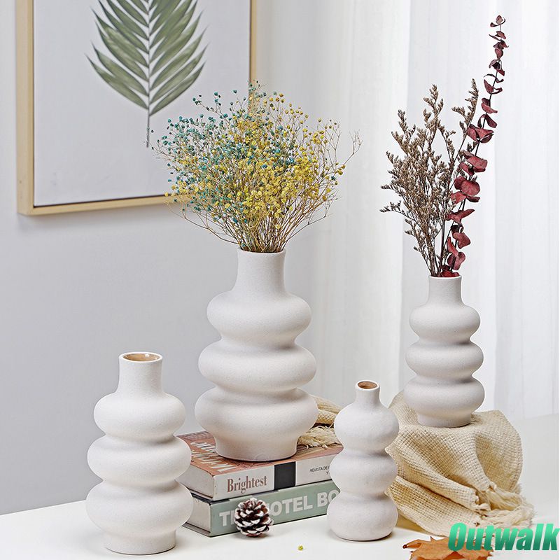 Perlengkapan Rumah > Dekorasi > Vas & Bejana > Vase Gaya Nordic Vas Keramik Putih Vas Modern Dekorasi Rumah Pot Bunga Lingkaran Keramik Karangan Bunga Wadah Hiasan Seni Desktop