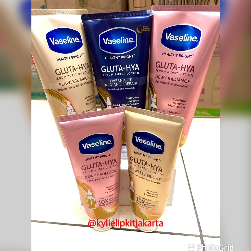 Detail Vaseline Gluta Hya Flawless Glow Body Serum Dewy Radiance 330 ml Krim Pencerah 200 ml Body Lotion Pencerah Kulit 200ml Pemutih Badan 330ml
