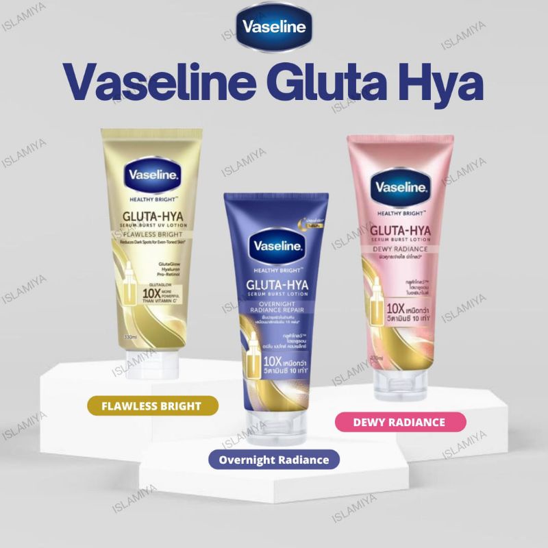 Vaseline Healthy Bright Gluta-Hya Serum Burst Lotion 200ML >> Dewy Radiance : - Serum pencerah tercanggih dan paling kuat dari Vaseline - Mengubah kulit Anda menjadi dewy dan glowing hanya dalam 5 hari. - Vaseline Gluta-Hya Serum Burst Lotion adalah lotion pertama dengan GlutaGlow dan Hyaluron yang memberikan kekuatan 10x lebih cerah daripada Vitamin C - Hadir dalam tekstur ringan yang meledak menjadi tetesan air - Produk terbaru dari Vaseline Healthy Bright, memanfaatkan kekuatan bahan perawatan wajah canggih yang menjanjikan manfaat yang lebih baik. -Diformulasi dengan Niacinamide untuk memberi Anda Kulit Cerah dan Dewy Glowing