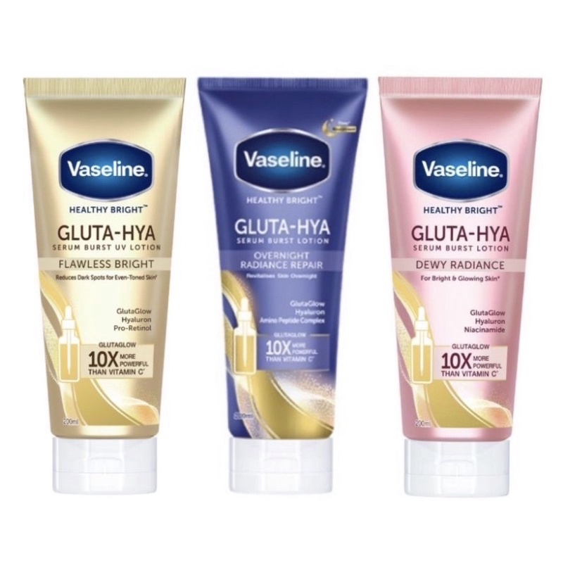 - Vaseline Gluta-Hya Serum Burst Lotion adalah lotion pertama dengan GlutaGlow dan Hyaluron yang memberikan kekuatan 10x lebih cerah daripada Vitamin C