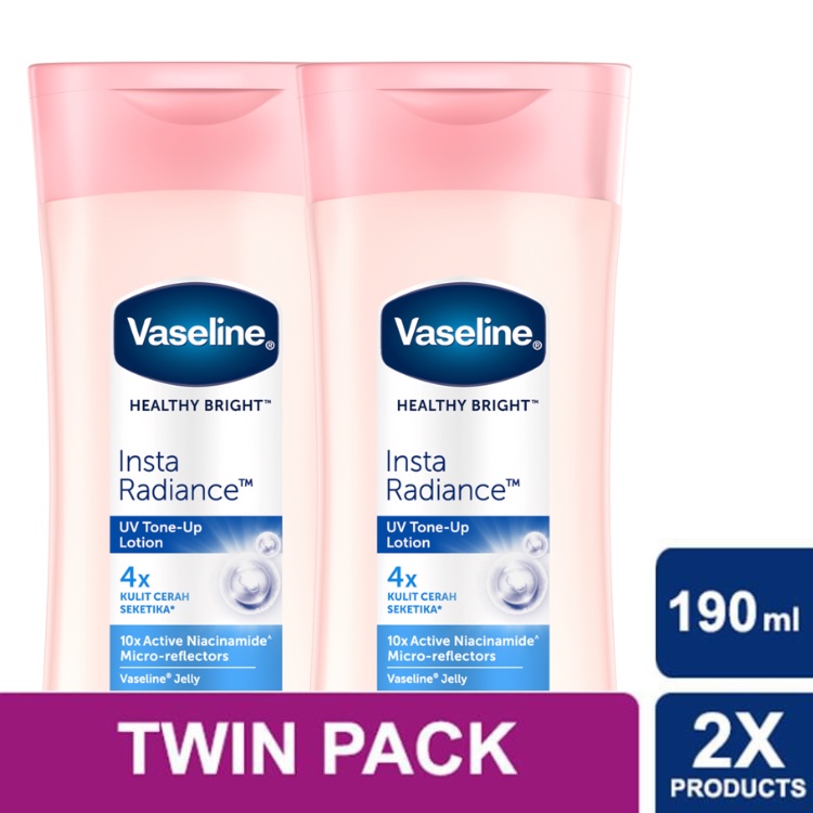 Terpapar sinar UV, polutan, dan hal berbahaya lain setiap hari dapat memicu produksi melanin, sehingga membuat kulitmu tampak lebih gelap dan rusak. Vaseline� Healthy White� Insta Fair mengandung micro reflectors agar kulit tampak 4x lebih cerah seketika*, serta bahan-bahan aman seperti Vitamin B3 alami agar kulit terus bertambah lebih cerah. Triple sunscreens menghalangi sinar UVA dan UVB untuk melindungi kecerahan kulit dari kerusakan lebih lanjut. Diperkaya micro droplets dari Vaseline Jelly, hasilnya adalah lotion yang memberikan kelembaban guna membantu memperbaiki kulit yang gelap dan rusak, membuatnya lebih sehat, tampak lebih cerah seketika*, dan terus bertambah lebih cerah. *Produk mengandung micro reflectors. Berdasarkan uji klinis oleh Unilever Research & Development di AS pada 2013 dengan metodologi invivo optic test yang diukur dengan menggunakan CM-2600D spectrophotometer. Dengan pemakaian teratur, hasil bervariasi tergantung jenis kulit.