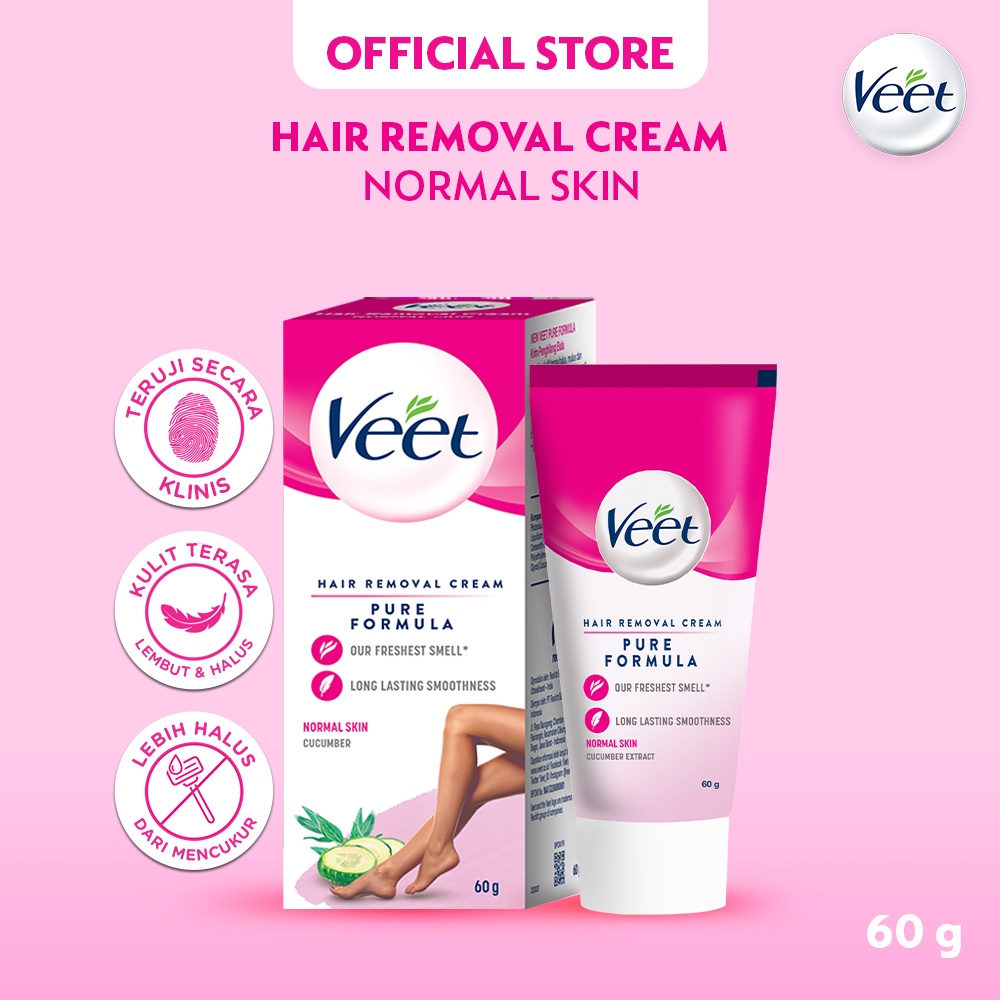 VEET menghilangkan bulu hingga dekat ke akar bahkan untuk rambut-rambut halus sekalipun. Kulit menjadi lembut dan halus hingga 7 hari. Diformulasikan untuk kulit normal dengan kandungan Cucumber yang yang menghaluskan. Kulit lebih terjaga dan selembut sutera, pertumbuhan bulu pun menjadi lebih halus.