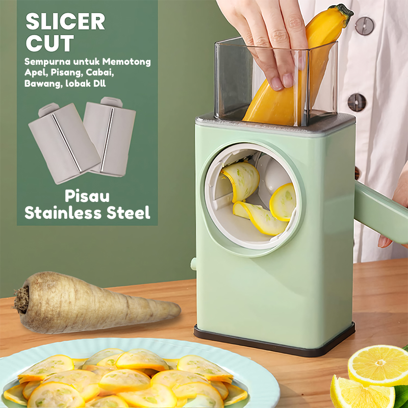 Detail Vegetable Slicer QCQ-2 Multifungsi Untuk Pemotong Sayur 3 Mata Pisau - Worlddekor