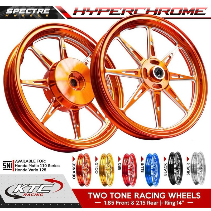 Otomotif > Suku Cadang Motor > Roda, Velg, & Aksesoris > VELG KTC RACING ORIGINAL HYPERCHROME TWO TONE CNC RING 14 ALLOY WHEELS PALANG 8 14x185 14x215 VARIO 110 BEAT SCOOPY GENIO SPACY VARIO 125 150 RING14 PALANG8 VARIO110 VARIO125 VARIO150 NEW 2023
