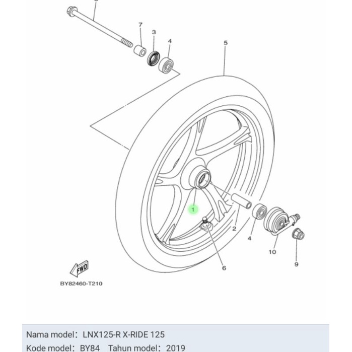 Detail VELG PELAK PELG DEPAN MIO GEAR XRIDE 125 ASLI ORI YAMAHA BY8 F5168 00 33