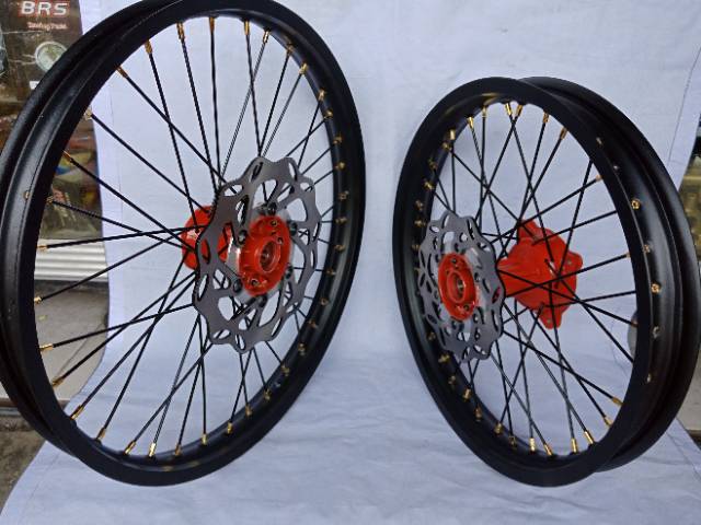 Otomotif > Suku Cadang Motor > Roda, Velg, & Aksesoris > Velg Pelek KLX 150 dan DTracker 150 Ring 16 19 ring 18 21 Paketan Velg Tromol klx jari jari sama piringan dan dirakit