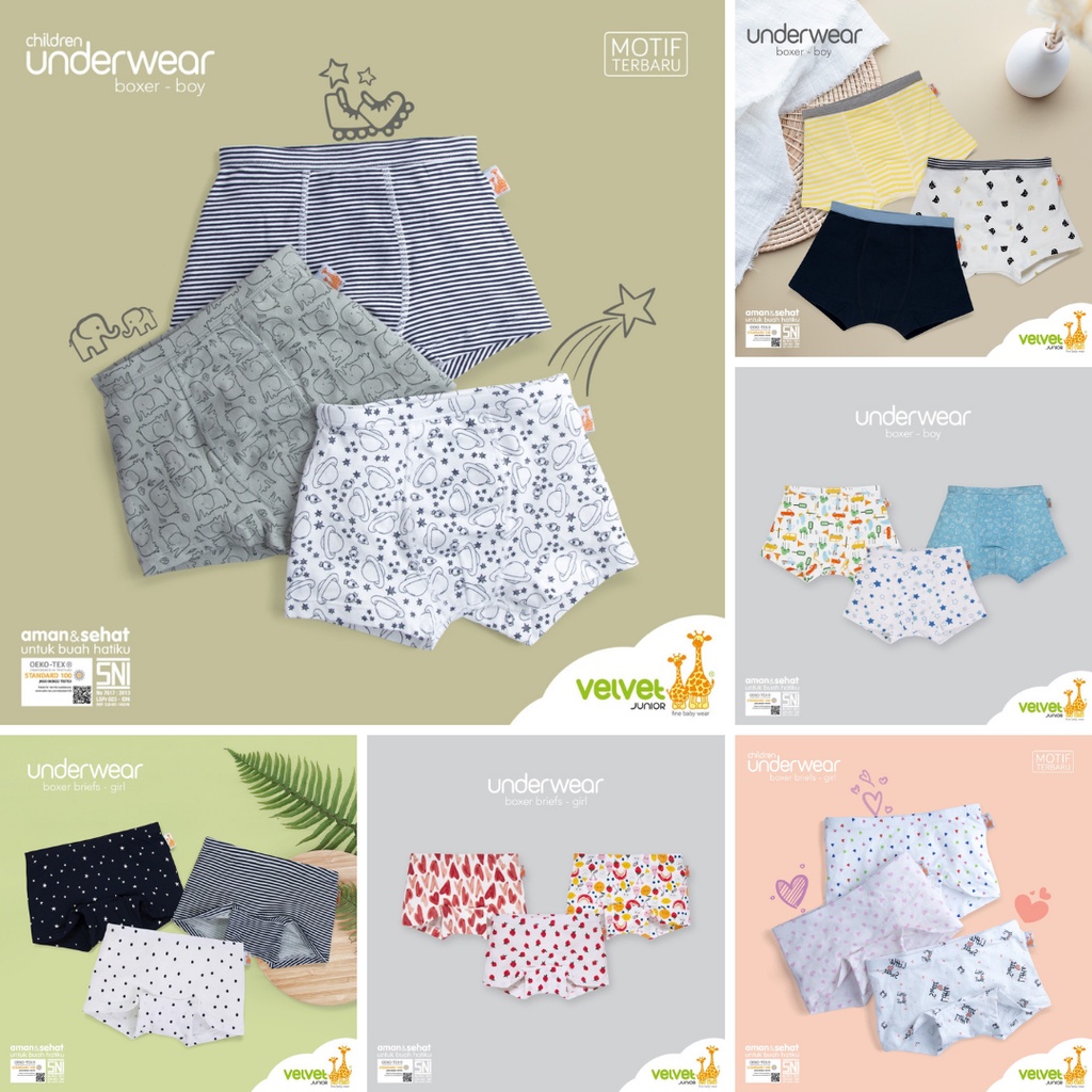 UnderWear Velvet Junior hadir dalam motif khusus Girl dan Boy.