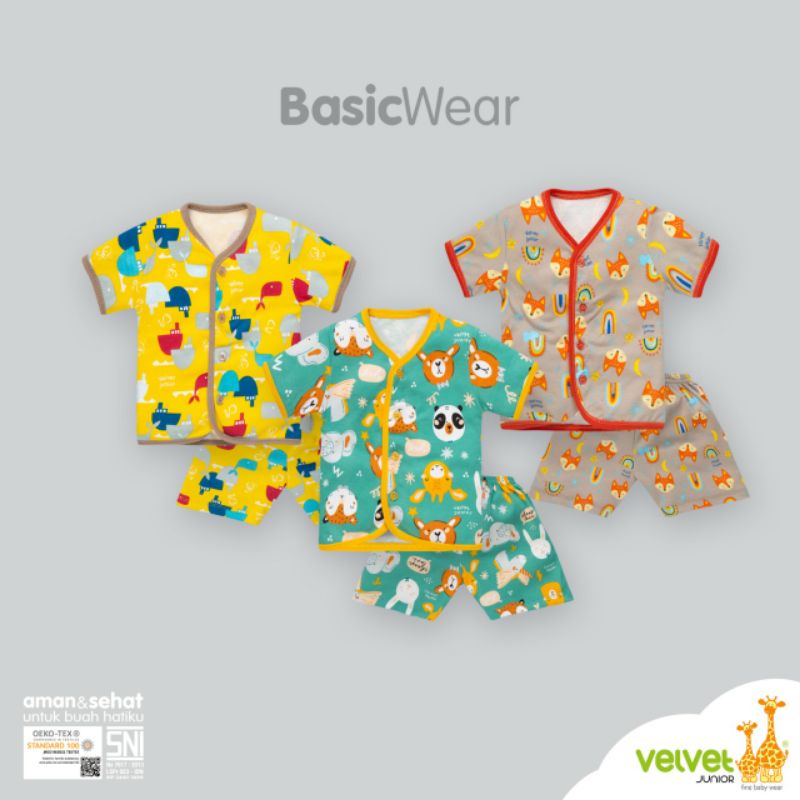 Setelan pendek merk Velvet Junior, bahan halus dan adem, bersertifikat OETex dan SNI Mohon check ketersediaan motif dan ukuran sblum order