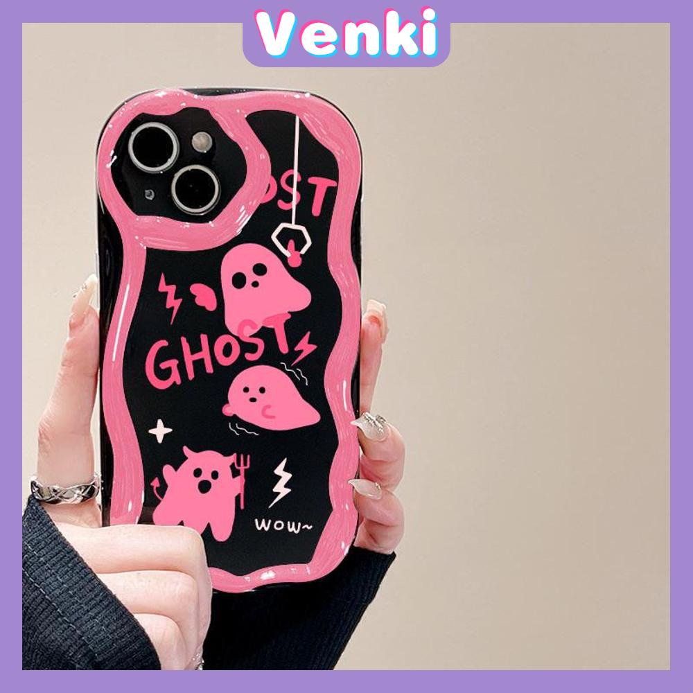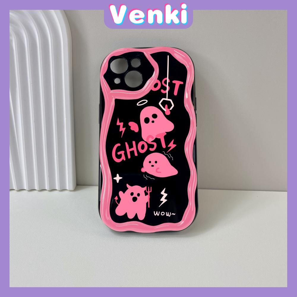 VENKI - For iPhone 11 iPhone Case 3D Curved Edge Wave Glossy Black TPU Airbag Shockproof Camera Cover Pink Ghost Compatible with iPhone 14 13 Pro max 12 Pro Max xr xs max 7 8Plus