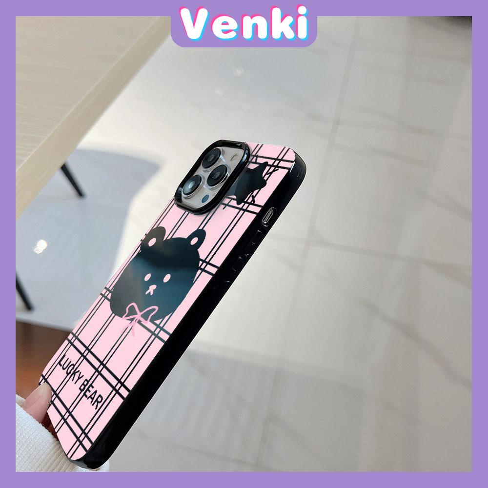 Handphone & Aksesoris > Casing & Skin > Casing & Skin Handphone > VENKI - For iPhone 11 iPhone Case Pink Glossy TPU Soft Shell Shockproof Protective Camera Cute Black Bear Star Compatible with iPhone14 13 Pro max 12 Pro Max xr xs max 7Plus 8Plus