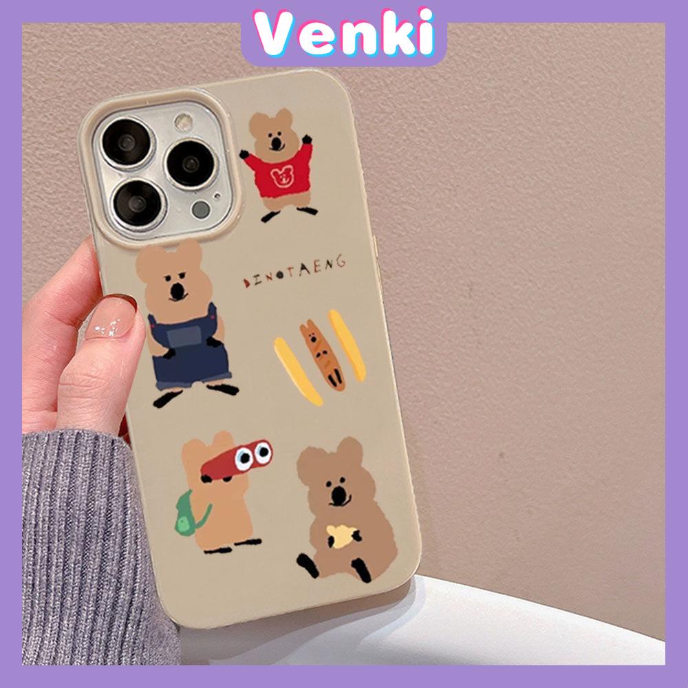 Handphone & Aksesoris > Casing & Skin > Casing & Skin Handphone > VENKI - For iPhone 11 iPhone Case Khaki Glossy TPU Soft Case Shockproof Protection Camera Cartoon Bear Persimmon Compatible with iPhone 14 13 Pro max 12 Pro Max xr xs max 7 8Plus