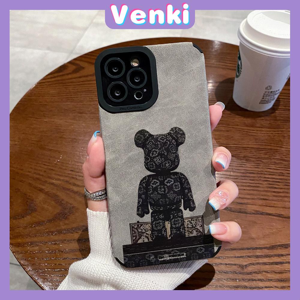VENKI - Untuk iPhone 11 Case Leather Pupil Suede Cover Soft Shockproof Case Camera Simple Cute Black Bear Kompatibel dengan iPhone 14 13 Pro max 12 Pro max xr xs 7Plus 8Plus