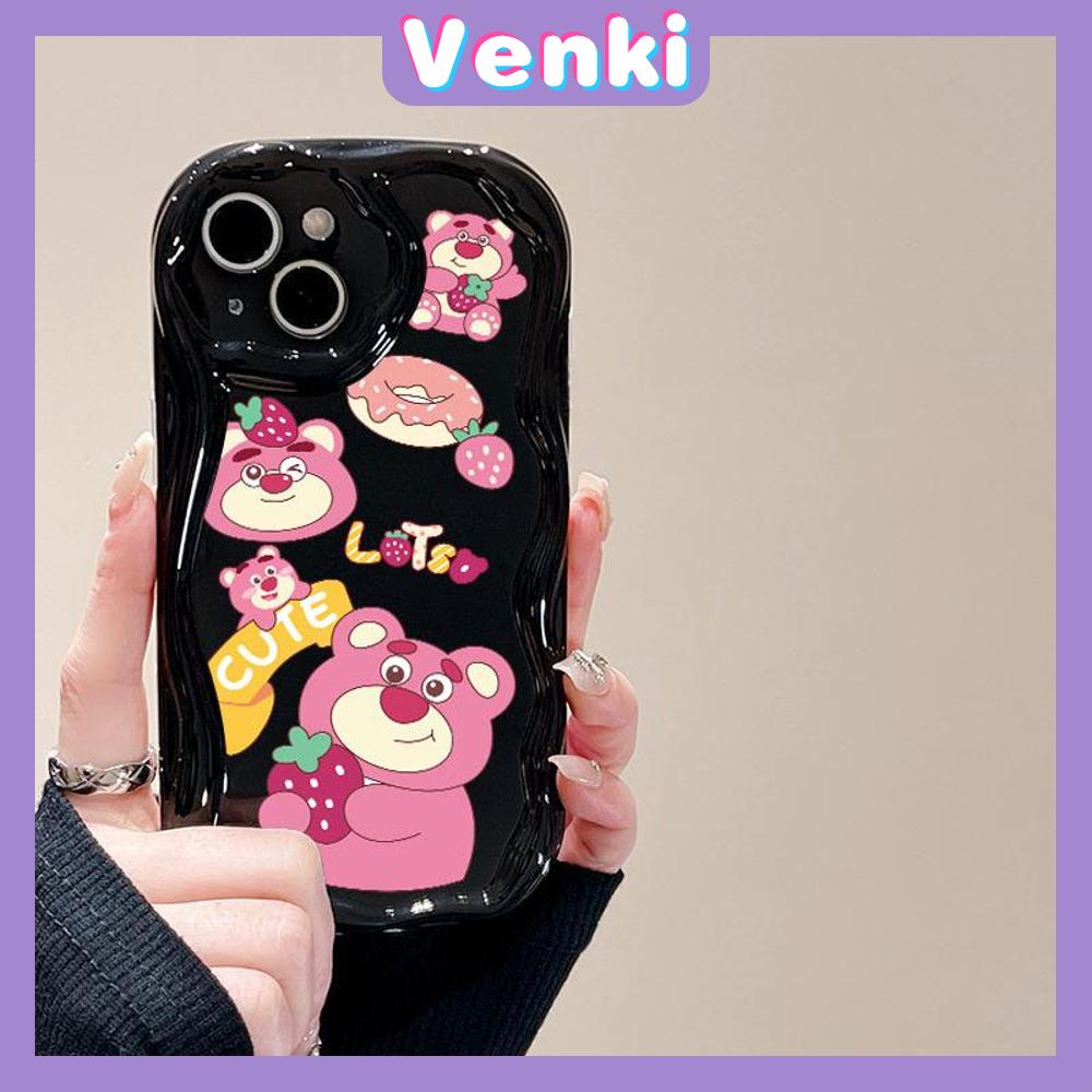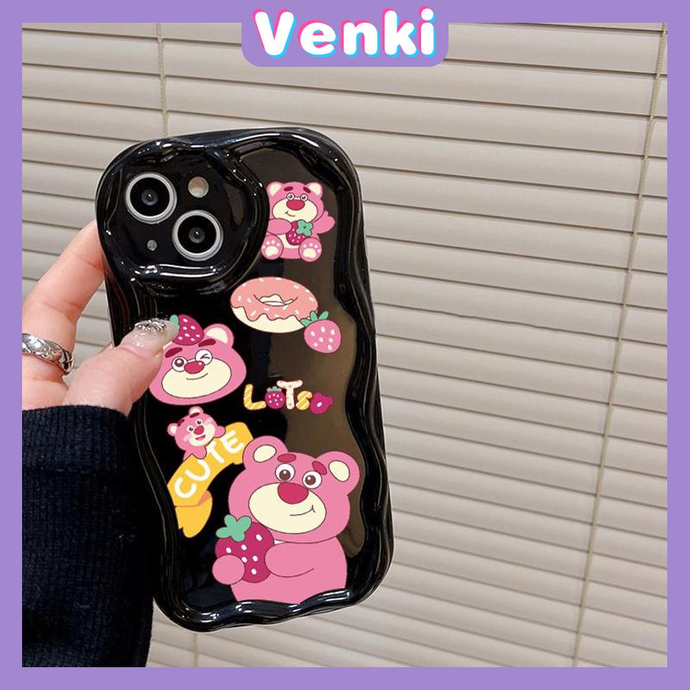 VENKI - Untuk iPhone 11 Case Curved Edge Wave Case Glossy Black TPU Airbag Shockproof Camera Case Cute Pink Bear Kompatibel dengan iPhone 14 13 Pro max 12 Pro Max xr xs 7Plus 8Plus