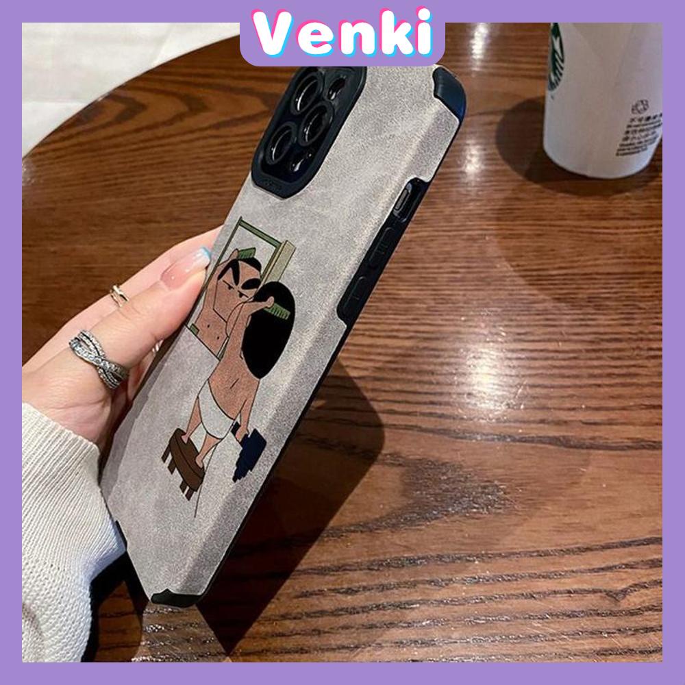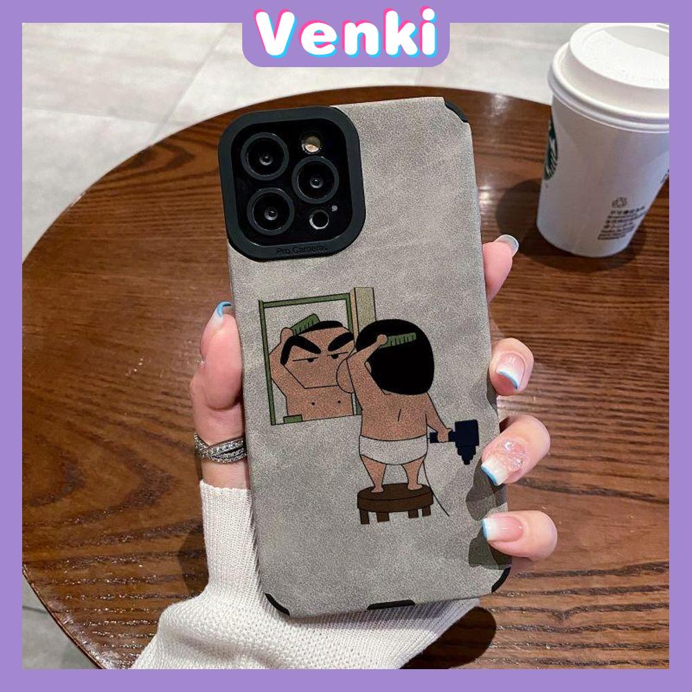 VENKI-Untuk iPhone 11 Case Kulit Anak Sekolah Suede Case Lembut Tahan Guncangan Ponsel Case Kamera Sederhana Karakter Kartun Lucu Kompatibel dengan iPhone 14 13 Pro max 12 Pro max xr xs 7 8