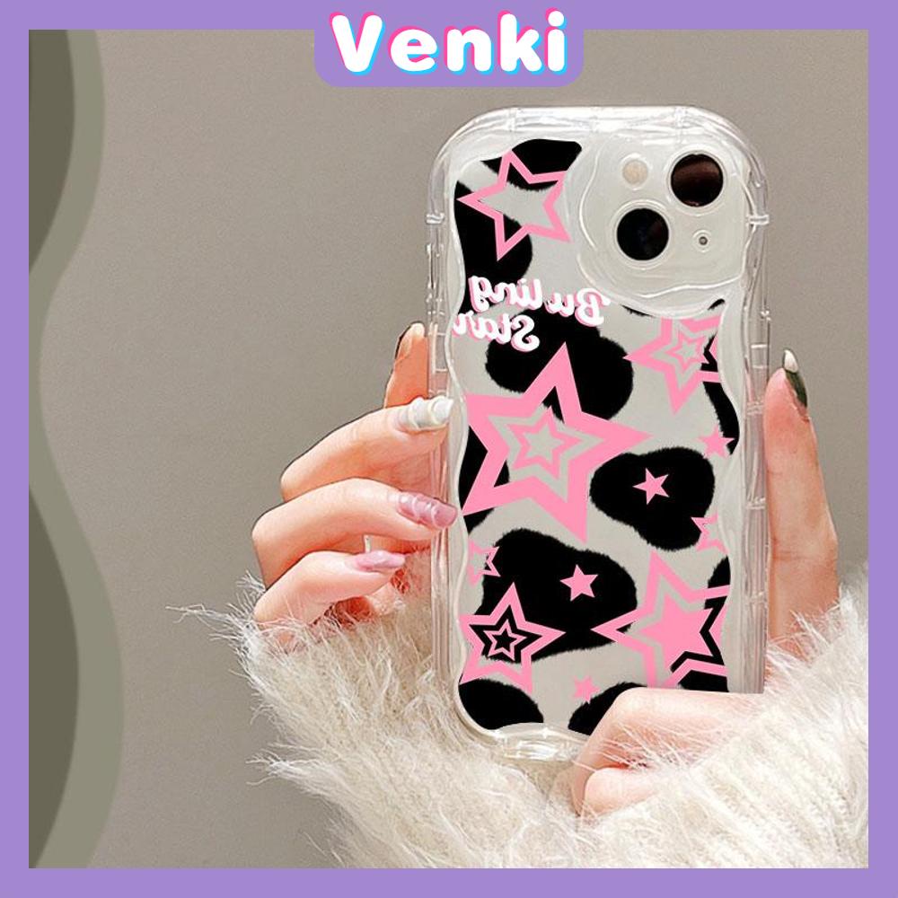 VENKI - Untuk iPhone 11 Case Tepi Melengkung Gelombang Case Bening TPU Airbag Tahan Guncangan Kamera Sederhana Bintang Merah Muda Kompatibel dengan iPhone 14 13 Pro max 12 Pro Max xr xs 7Plus 8Plus