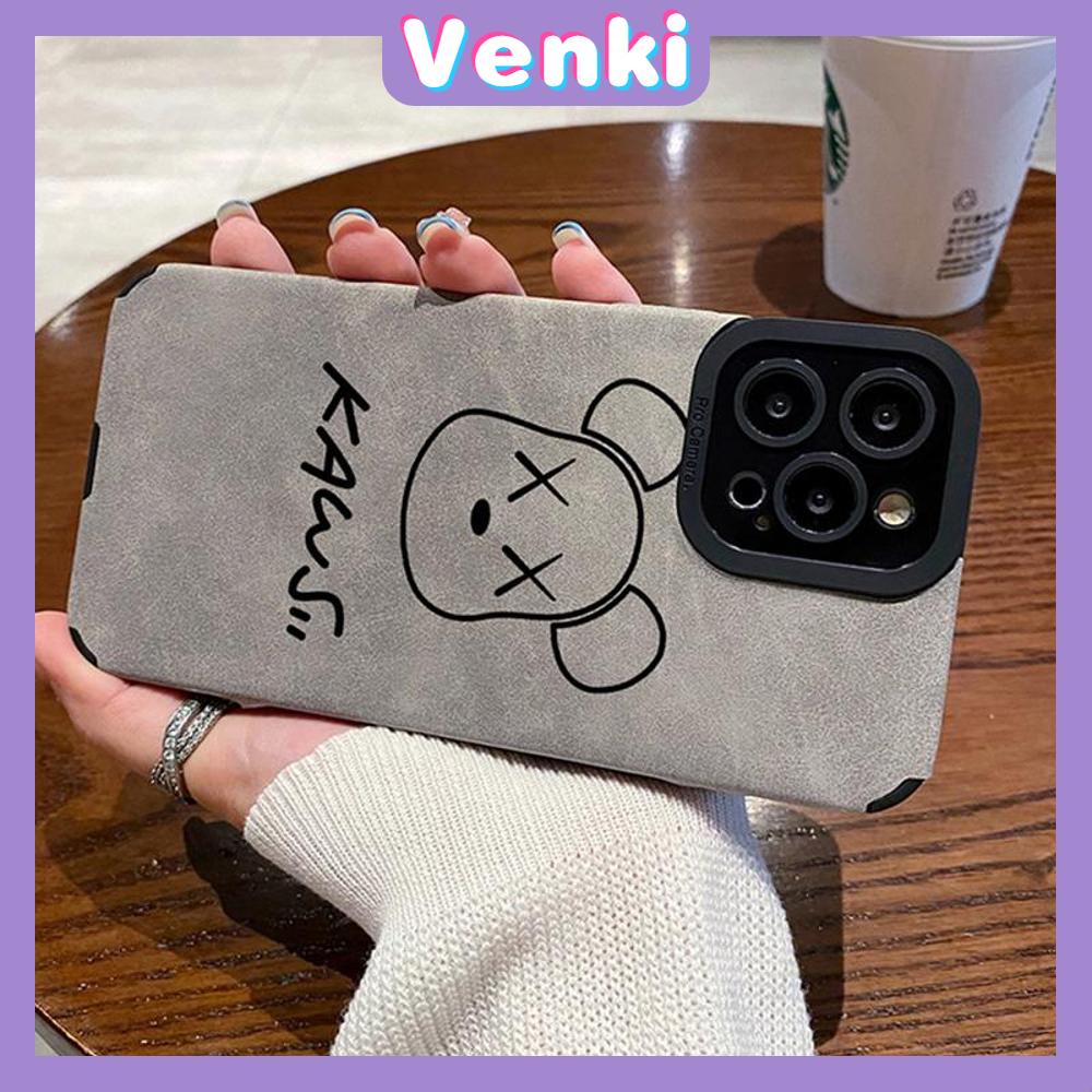 VENKI - Untuk iPhone 11 iPhone Case Kulit Dilaminasi Pupil Mata Suede Phone Case Soft Shockproof Airbag Case Pelindung Kamera Cute Bear Kompatibel dengan iPhone 14 13 Pro max 12