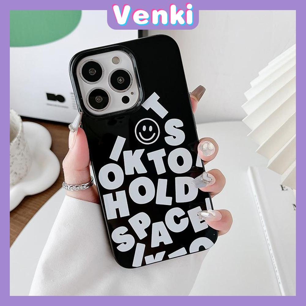 VENKI - Untuk iPhone 11 iPhone Case Hitam Glossy TPU Soft Case Tahan Guncangan Perlindungan Pompa Kamera Sederhana Alfabet Bahasa Inggris Kompatibel dengan iPhone 14 13 Pro max 12 Pro Max xr xs max
