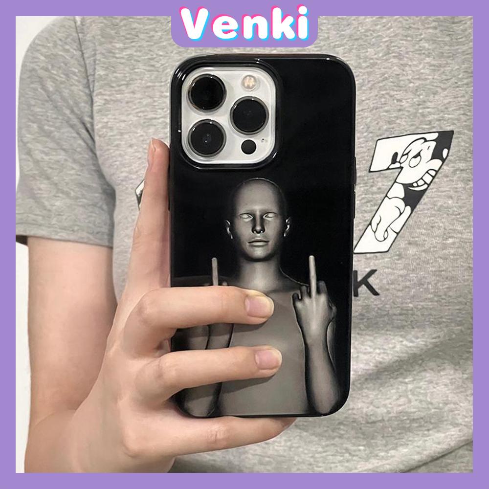 VENKI - Untuk iPhone 11 iPhone Case Hitam Glossy TPU Soft Case Shockproof Perlindungan Kamera Abstrak Lucu Gambar Kompatibel dengan iPhone 14 13 Pro max 12 Pro Max xr xs max 7 8Plus