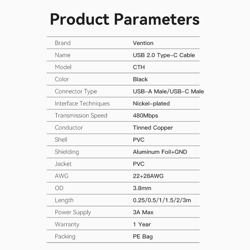 SPECS : ▪️ Model : CTH ▪️ Color : Black & White ▪️ Interface Techniques : Nickel Plated ▪️ Conductor : Tinned Cooper ▪️ Shell : PVC ▪️ Jacket : PVC ▪️ Shileding : Aluminum Foil+GND ▪️ AWG : 22+28AWG ▪️ OD : 3.8mm ▪️ Length : 0.25/0.5/1/1.5/2/3 Meter ▪️ Power Supply : 3A max