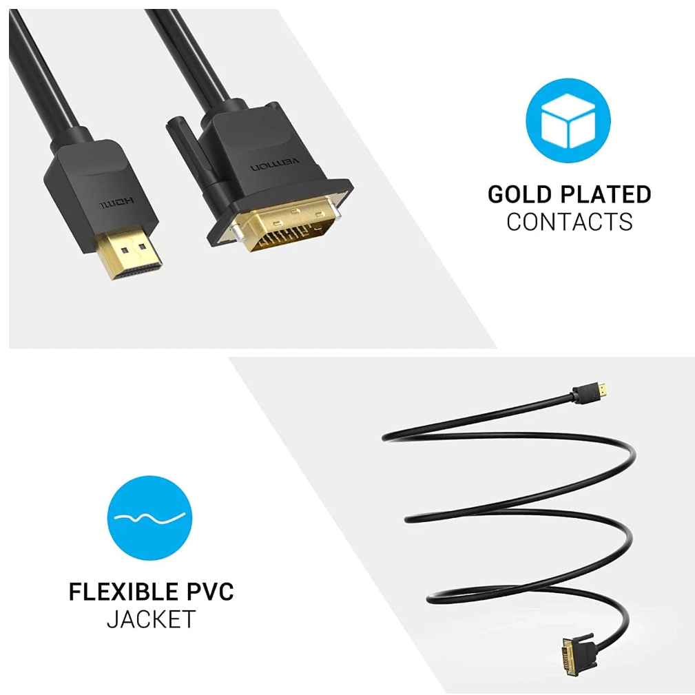 Elektronik > Perangkat Audio & Speaker > Kabel & Konverter Audio & Video > Vention Kabel Converter HDMI Male to DVI Male Monitor Komputer Laptop 1M 2M 3M 5M