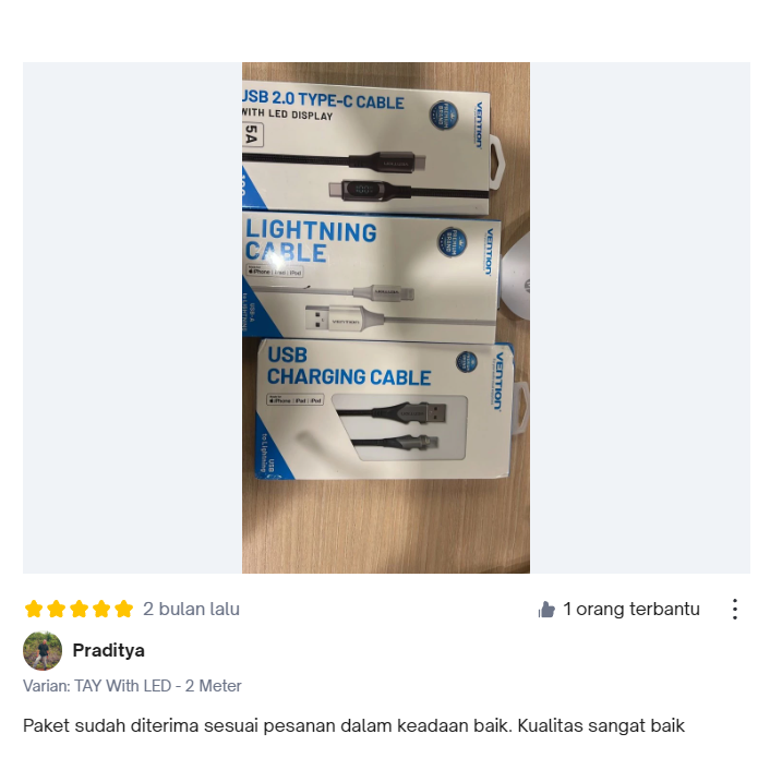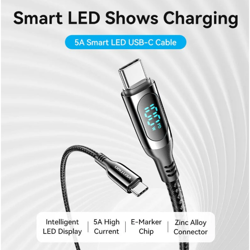 Handphone & Aksesoris > Kabel, Charger, & Konverter > Kabel & Adaptor Handphone > Vention Kabel USB Type C to C PD C 5A Fast Charge QC 4.0 100W Digital