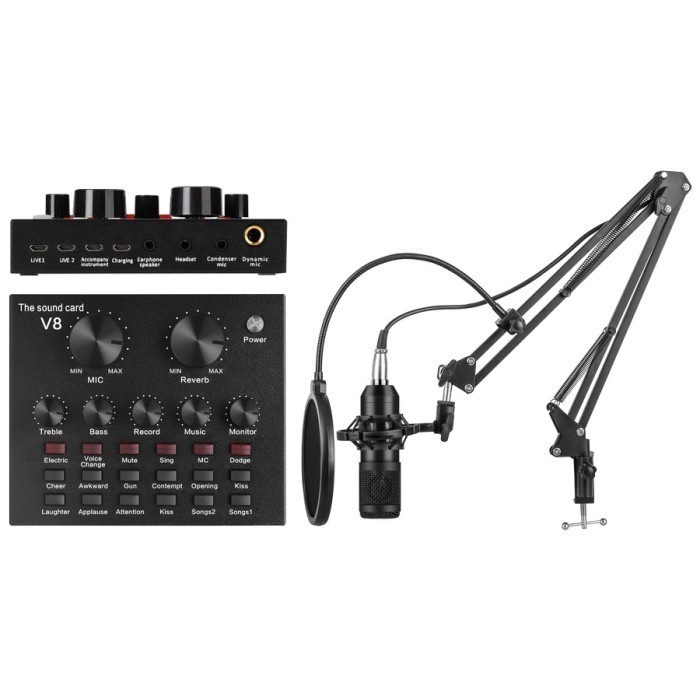 📛 Spesifikasi : ❇️ DSP chip audio sound ❇️ 7.1 audio ❇️ Cardioid pattern ❇️ Two noise Canceling ❇️ Interface Type : usb ❇️ Channels : 2 ❇️ Model Number : X1 +V8 plus ❇️ Product name : V8 Plus Sound Card ❇️ Color : Black ❇️ Material : Metal & Plastic ❇️ Battery capacity :1100 mAh ❇️ Application : Family, KTV, stage performance, conference, speech, interview ❇️ Packing Size : 43*27*9cm