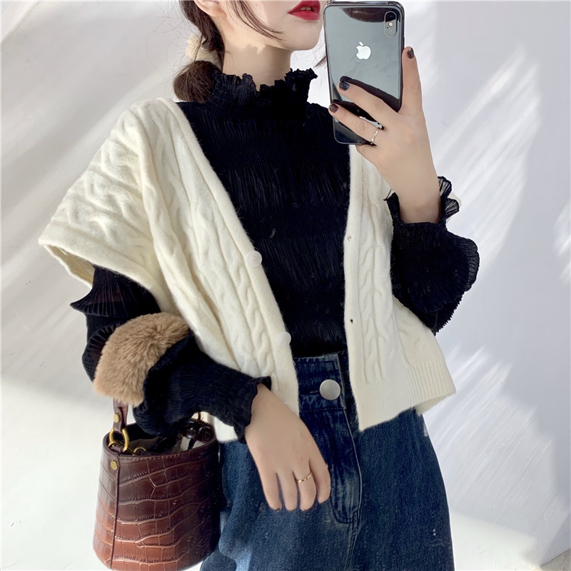 Detail Versi Korea Longgar All-Match Lengan Panjang Chiffon Temperamen Renda Kemeja Turtleneck Bottoming Top bell sleeves