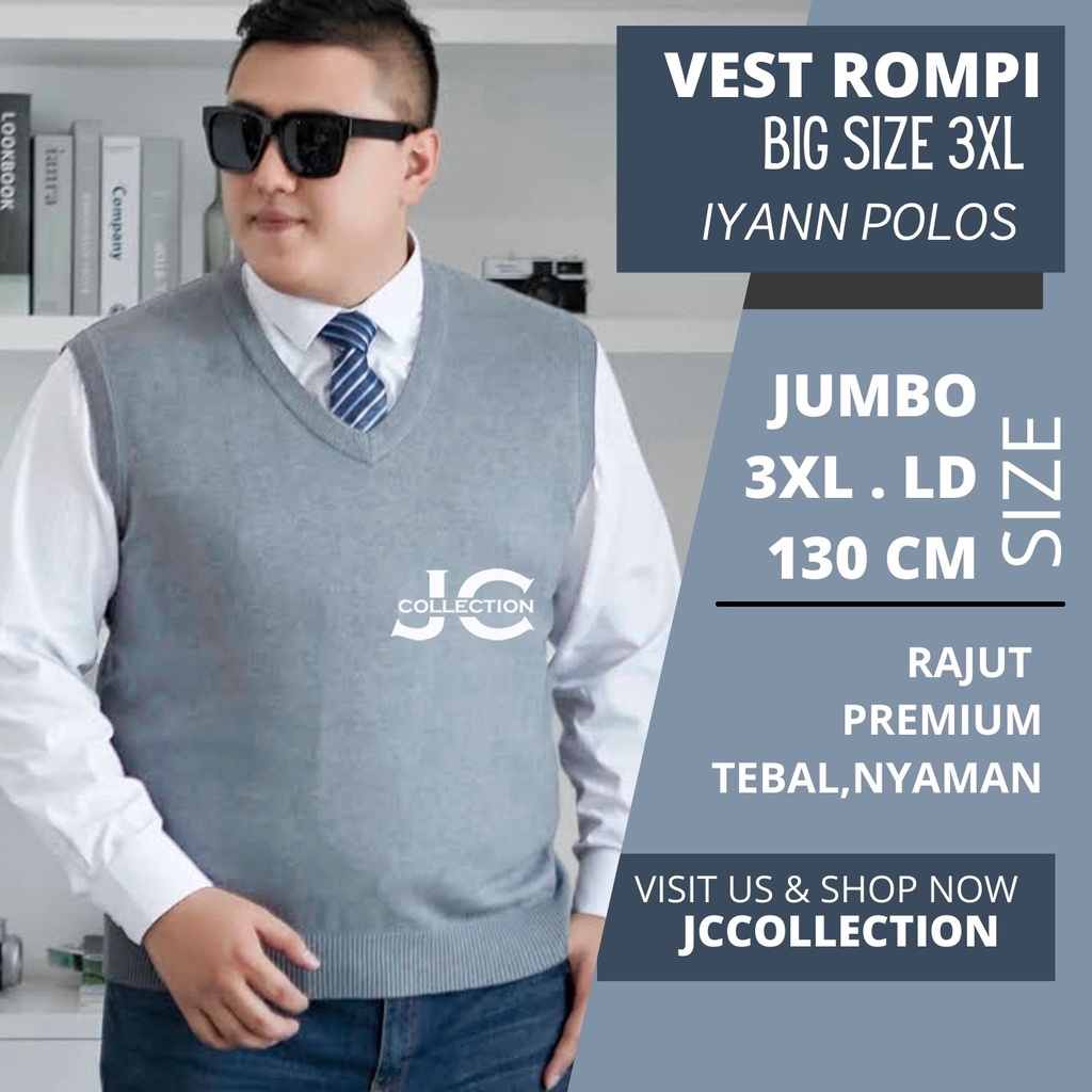 Kini JC Fashion hadir dengan produk rompi rajut ukuran Big Size / Jumbo, khusus untuk berat badan 100kg ke atas