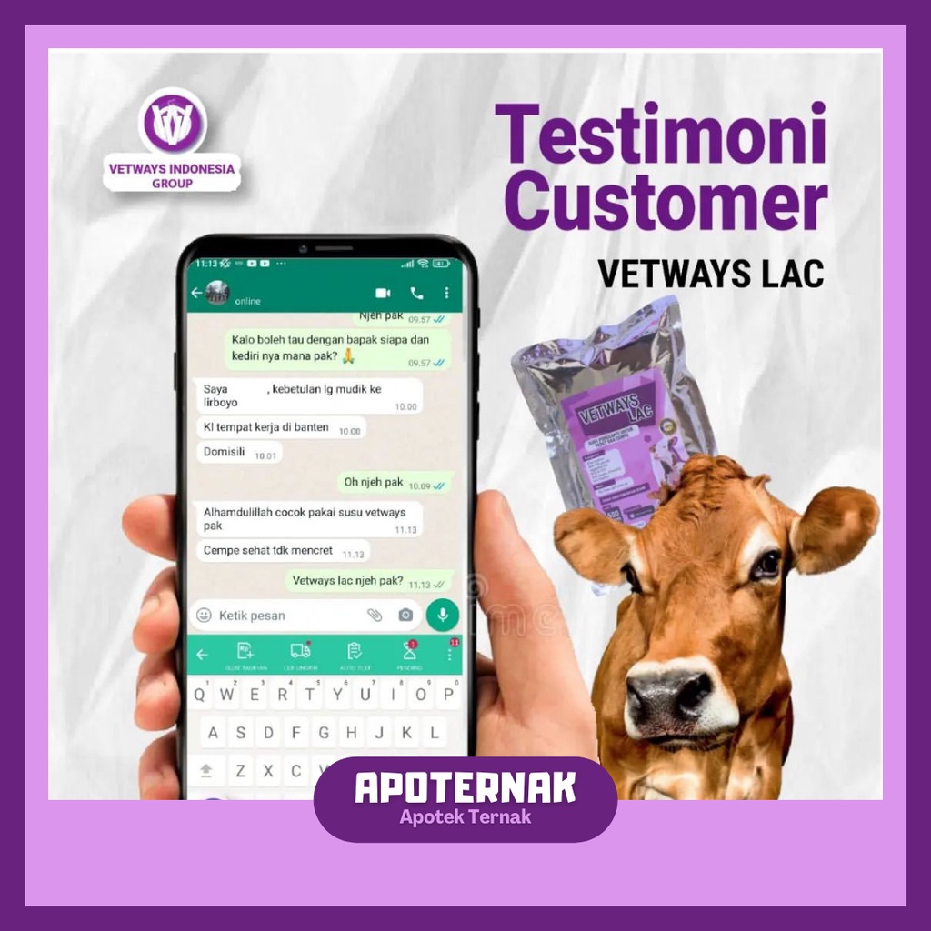 Vetways Lac merupakan susu pengganti untuk cempe dan pedet yang bisa di berikan setelah fase kolostrum dan aman tidak bikin diare.