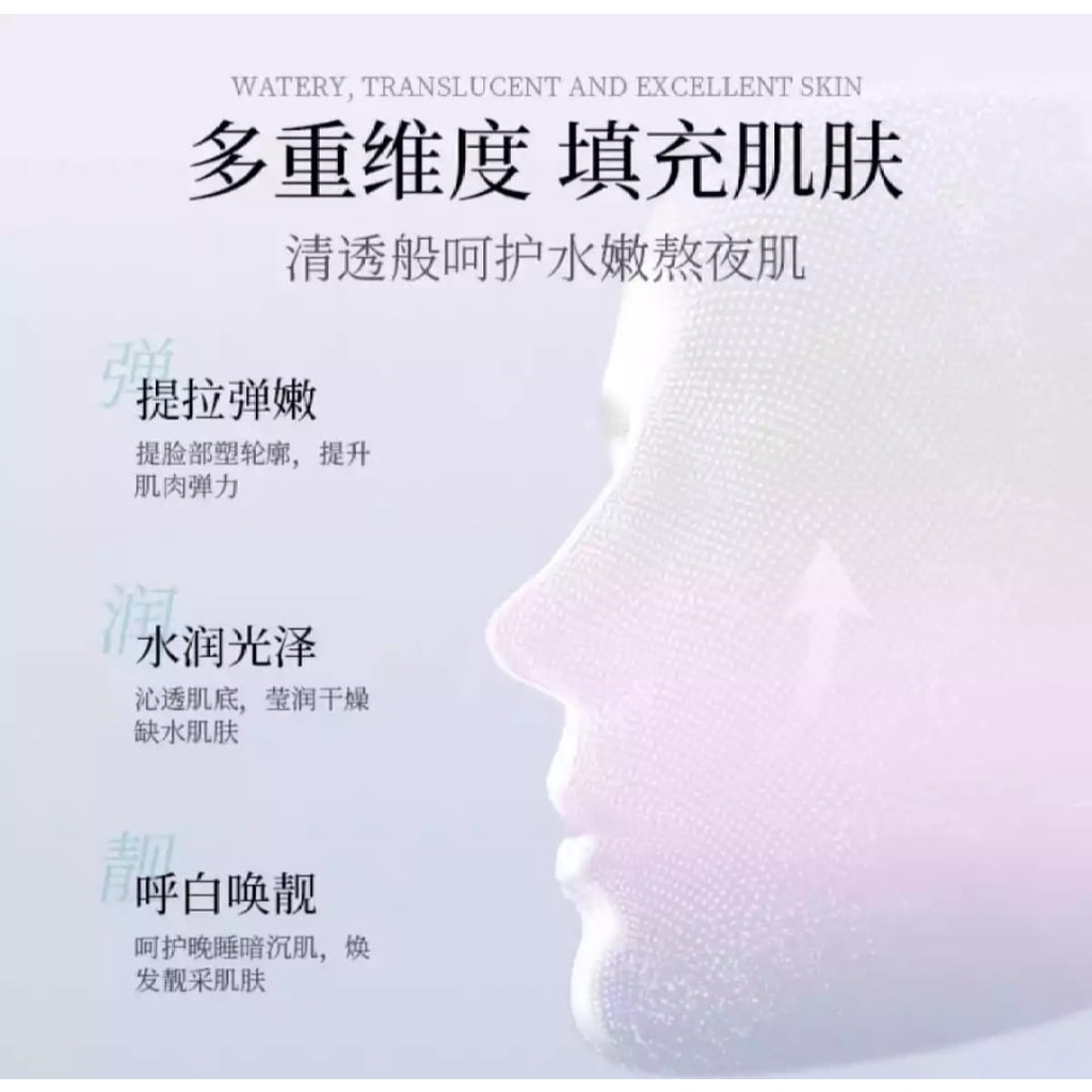 cocok untuk berbagai jenis kulit , khasiat produk : tekstur halus dan lembut ,ringan , lembut dan bernapas , di tambah bahan b-glucan , bahan baku seperti oligopeptida-1 , warna kulit halus , melembabkan , dan mengisi kembali kelembapan dan mengisi dan dehidrasi , membuat kulit , halus dan elastis