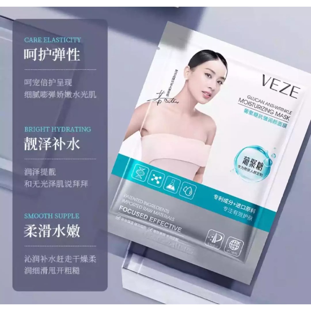 Veze sheet mask moisturizing 25gram Isi 10Pcs masker pelembab anti-kerut veze dextran , masker pelembab anti-kerut glukan rasa isi 25g