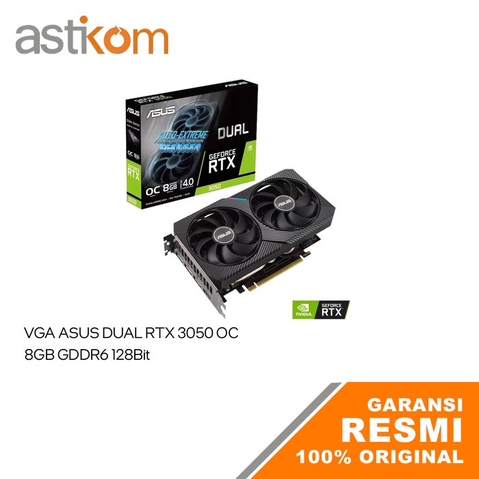 ASUS DUAL RTX 3050 O8G 128-bit HDMI / DP DUAL-RTX3050-O8G P/N : (90YV0HH0-M0IA00) ---------- SPECIFICATION Graphic Engine : NVIDIA® GeForce RTX™ 3050 Bus Standard : PCI Express 4.0 OpenGL : OpenGL®4.6 Video Memory : 8GB GDDR6