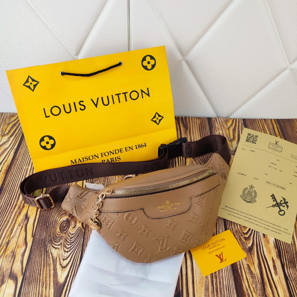 Tas Wanita > Tas Pinggang Wanita > VIBELLESHOPBAGS / TAS PINGGANG LV FULL EMBOSSED BUNGA BAHAN PAPIRUT IMPORT FREE PAPPERBAG - Waistbag ELVI Import 0683