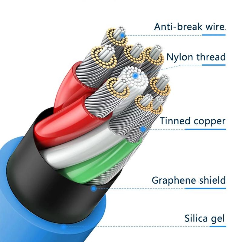 Mendukung Arus Besar 6A untuk Mengisi daya ponsel Anda dan Kecepatan Sinkronisasi Data Maks 480Mbps(60Mb/dtk), tidak hanya menghemat waktu, tetapi juga melindungi ponsel Anda.