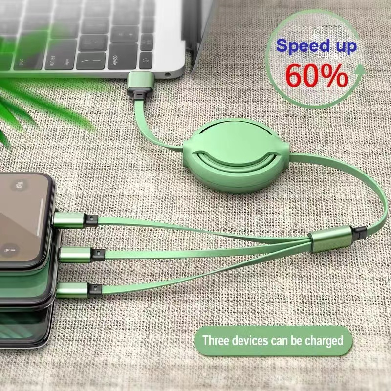 Handphone & Aksesoris > Kabel, Charger, & Konverter > Kabel & Adaptor Handphone > VICLOOK COD 3 in 1 Kabel USB Kabel Pengisian Cepat Kabel Data Silikon Cair Yang Dapat Ditarik Untuk Iphone Mikro Tipe-C