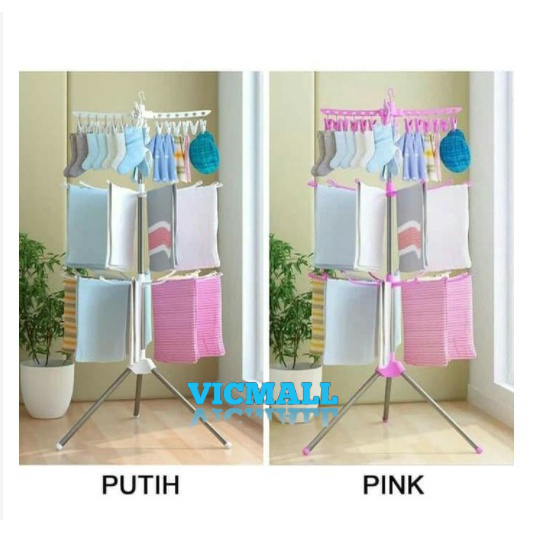 Perlengkapan Rumah > Alat Pemeliharaan Rumah > Tali Jemuran & Rak Pengering > VICMALL - Jemuran Menara Lipat Tempat Jemuran Baju Model Menara 3 Susun Tempat Jemuran Gantungan Bayi Jepitan Baju Pakaian Bayi baju Baby Anak kecil Portable berdiri hanger rak minimalis murah tidak makan tempat