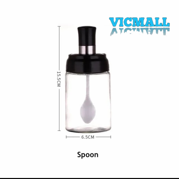 Toples bumbu dari bahan kaca tebal, fungsinya untuk tempat bumbu dapur seperti Lada,merica, micin, garam, sambal dan sejenisnya. Uniknya, botol bumbu ini dilengkapi sendok pada tutup botol, sendok sudah nempel di tutup botol. Tutup botol terdapat lapisan karet kedap udara, tutupnya sangat rapat. Dengan model sendok yang nempel di tutup botol, tuang bumbu dapur jadi mudah, tidak berlebihan, rasa masakan jadi lebih pas. Ada lapisan bahan stainless di bagian tutup botol. Bisa ditempatkan di dapur atau meja makan, dengan model kaca tranparan memudahkan membedakan jenis bumbu yang tersimpan di dalam botol.
