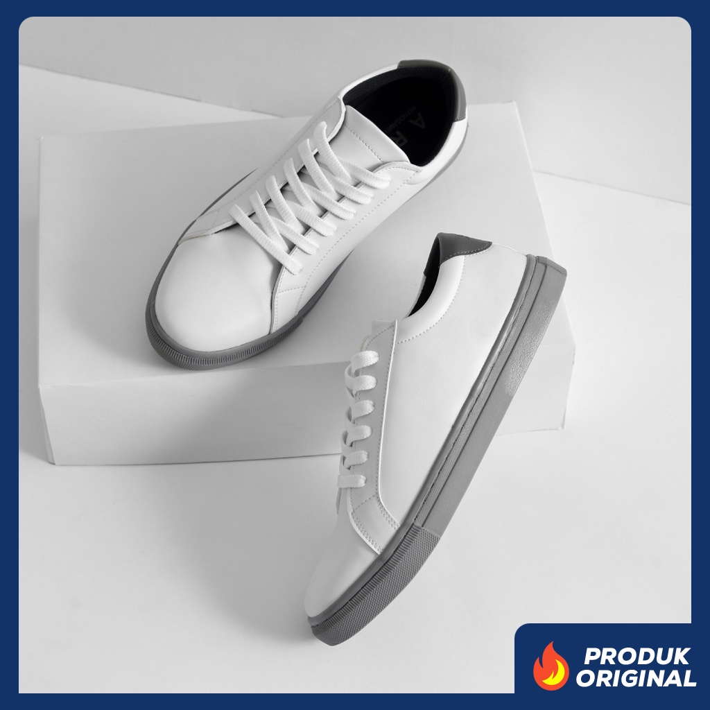 Sepatu Pria > Sneakers > VICTOR WHITE GREY ORIGINAL x ARF Sepatu Sneakers Putih Abu-Abu Pria Kets Tali Casual Jalan Santai Hangout Main Nongkrong Kondangan Sekolah Kuliah Sporty Distro Fashion Simple Sport Shoes Semi Kulit Premium Skate Footwear Keren Terbaru Kekinian Branded