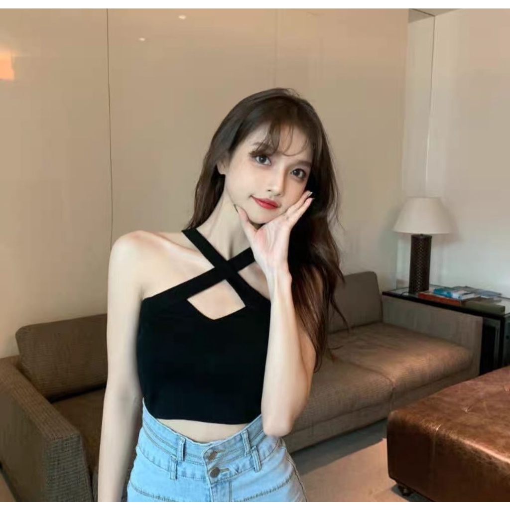 Detail Victoria Crop Top Wanita Bahan Rajut Style Korea 4053