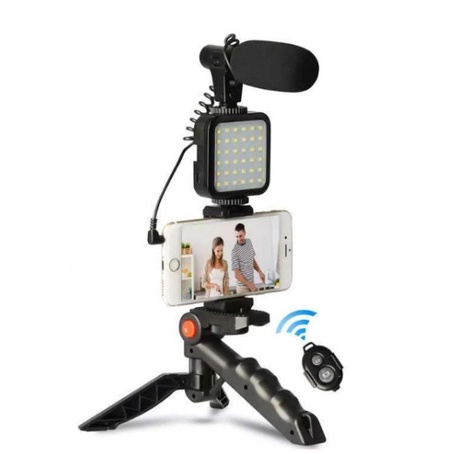 Video Making Set / AY-49 Tripod Video Making Kit Bluetooth Mic LAMPU LED Tripod Vlogging A3 Baterai Audio Cable 3.5mm