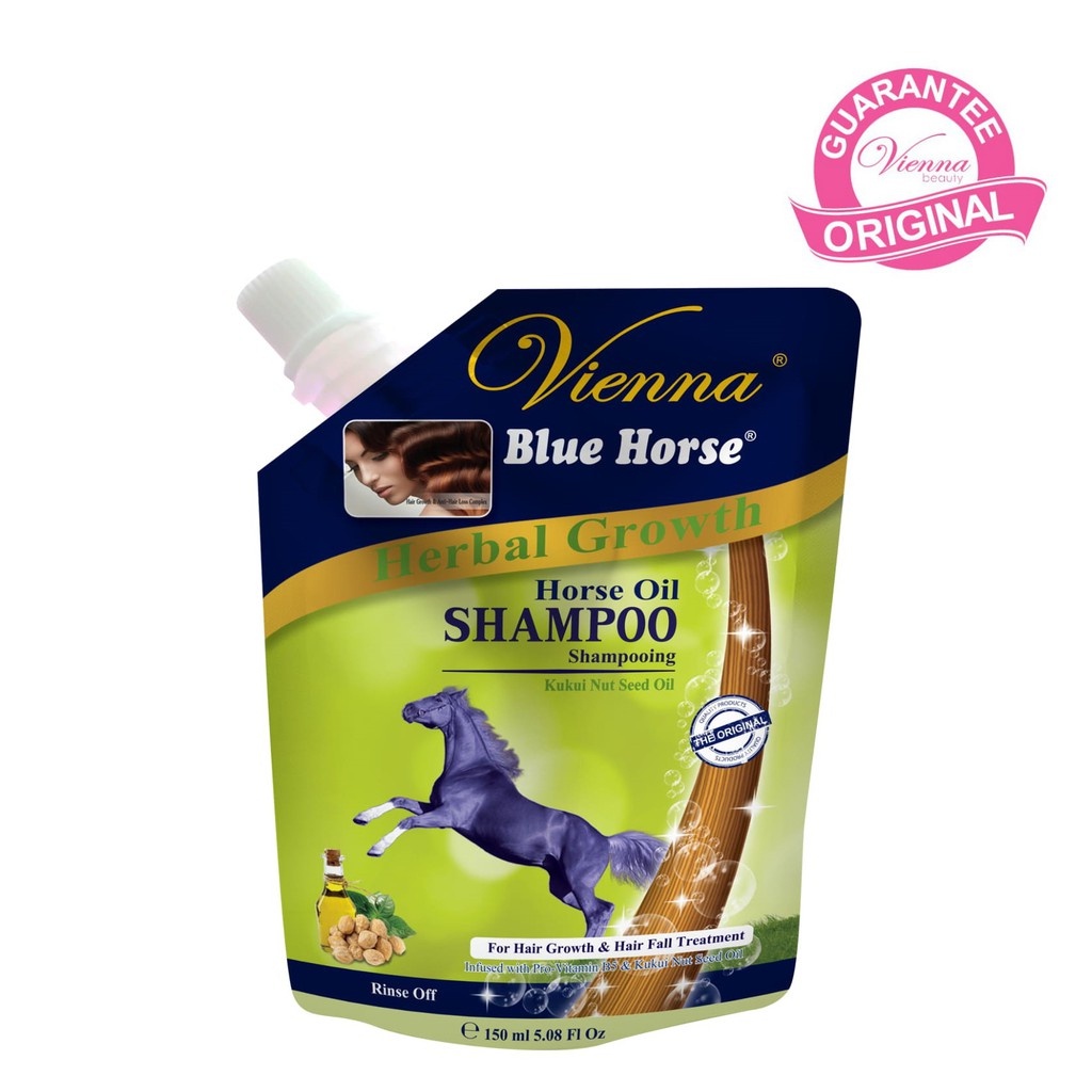- VIENNA BLUE HORSE SHAMPOO HERBAL GROWTH - 150ML POUCH Diformulasi dengan: Minyak Kemiri telah dikenal sejak zaman dahulu secara tradisional, membantu pertumbuhan rambut hitam dan tebal. Ginseng menutrisi rambut agar rambut lebih kuat secara alami Hair Growth dan Anti-Hair Loss Complex untuk menutrisi dan membantu perawatan rambut rontok dan pertumbuhan rambut Menutrisi dan merawat rambut agar tampak segar, lebih banyak dan panjang. Dari hari ke hari, menjadikan rambut anda lebih halus, mudah ditata dan berkilau. Rambut sungguh terasa lebih ringan.