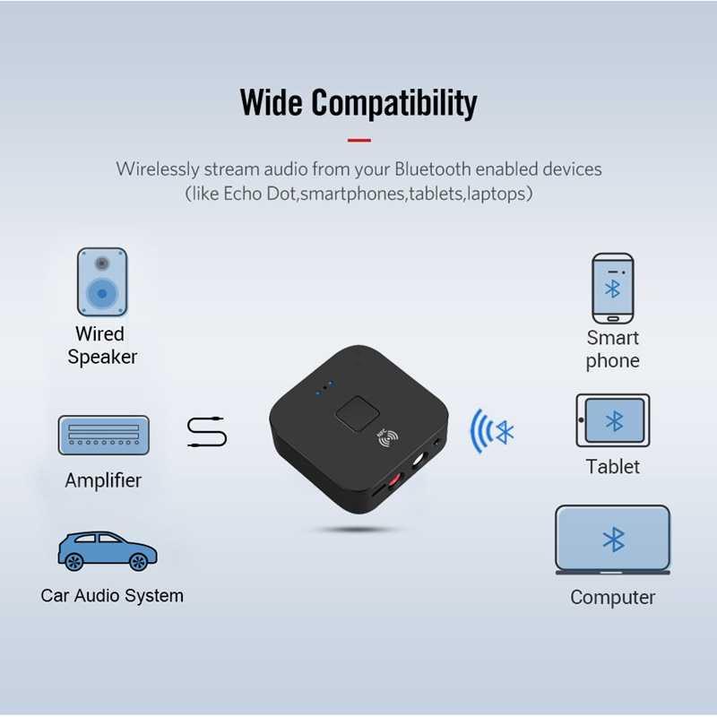 Cocok di Banyak Perangkat Anda bisa menggunakan alat NFC Bluetooth ini dengan berbagai device yang memiliki bluetooth atau pun port audio 3.5 mm dan RCA audio.