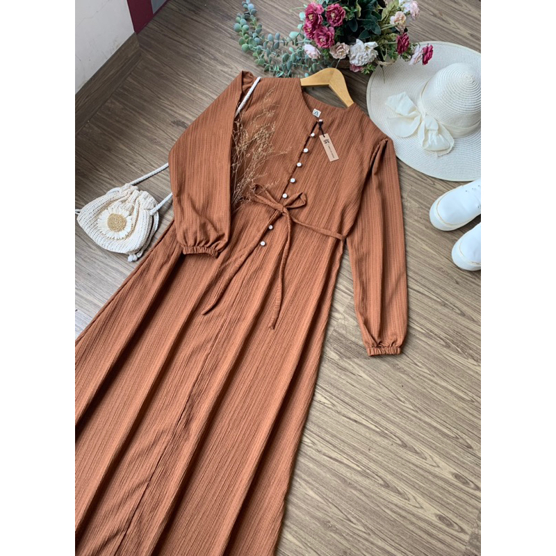 🖤 DETAIL PRODUK: • Desain gamis : Vintage Dress • Material kain: Crinkle elektra • Terdapat kancing vintage depan (busui friendly) • Desain lengan lurus dengan ujung lengan menggunakan manset kancing (wudhu friendly) • Desain siluet A line dengan lebar rok kurang lebih 2meter. Leluasa dan praktis saat dipakai • Terdapat satu saku bagian kanan