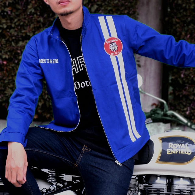Vintage bikers jacket . . Keterangan Produk: 1. Warna : Biru 2. Tersedia berbagai warna cek katalog (Merah ,Biru ,Putih) 3. Size : M ,L ,XL 4. Bahan : 100% Cotton Twill 5. Tidak terlalu tebal ,jdi adem saat dipkai hangout 6. Full bordir 7. Zipper YKK 8. Foto 10000% REAL PICTURE YA! GAK USAH NANYA2 REAL PICTURE LAGI. BE A SMART BUYER😊 . . Model menggunakan size L Bb Model :70kg Tinggi : 180cm
