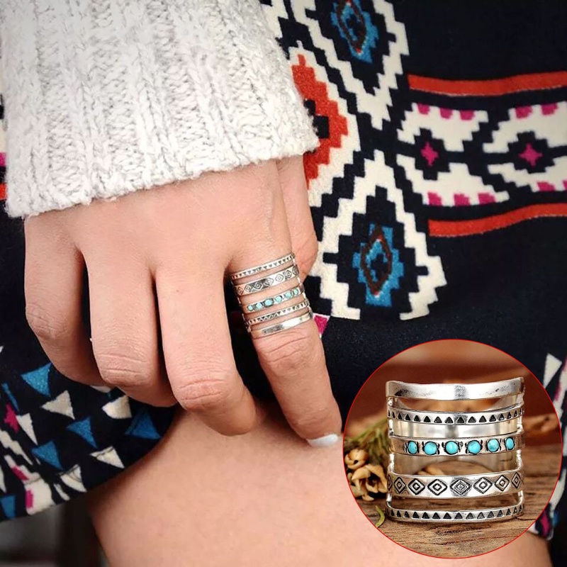 Detail Vintage Ladies's Decorative Jewellery Entertainment Shopping Jewellery Accessories Cincin Kerawang Etnik Ukiran Cincin Batu Permata Simulasi