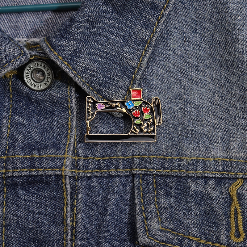 Detail Vintage Mesin Jahit Enamel Pin Motif Bunga Bros Pakaian Kerah Brooch Badge Aksesoris Wanita Perhiasan Hadiah