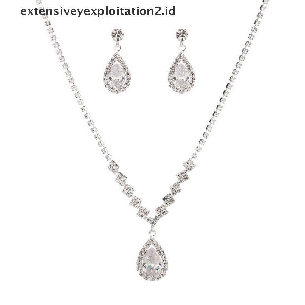 Detail Vintage Perak Kristal Tetesan Air Liontin Kalung Anting Perhiasan Pernikahan