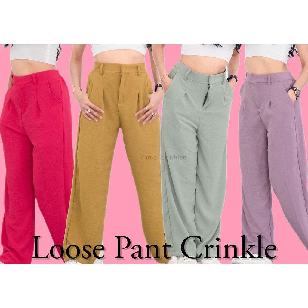 Detail VIOLET HIGHWAIST LOOSE PANTS KULOT CRINCLE AIRFLOW BANYAK WARNA